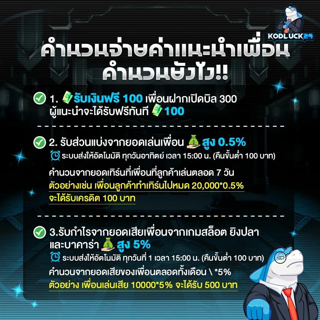 ชวนเพื่อนมาเล่นเว็บใหม่ KODLUCK รับเงินส่วนแบ่งคุ้ม!
