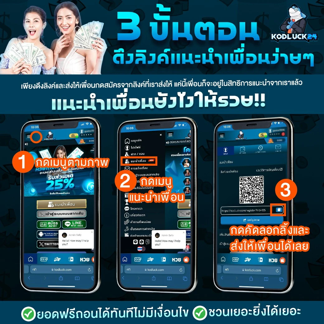 โคตรรักเพื่อน ชวนเพื่อนมาเล่นเว็บใหม่ KODLUCK รับเงินส่วนแบ่งคุ้ม!